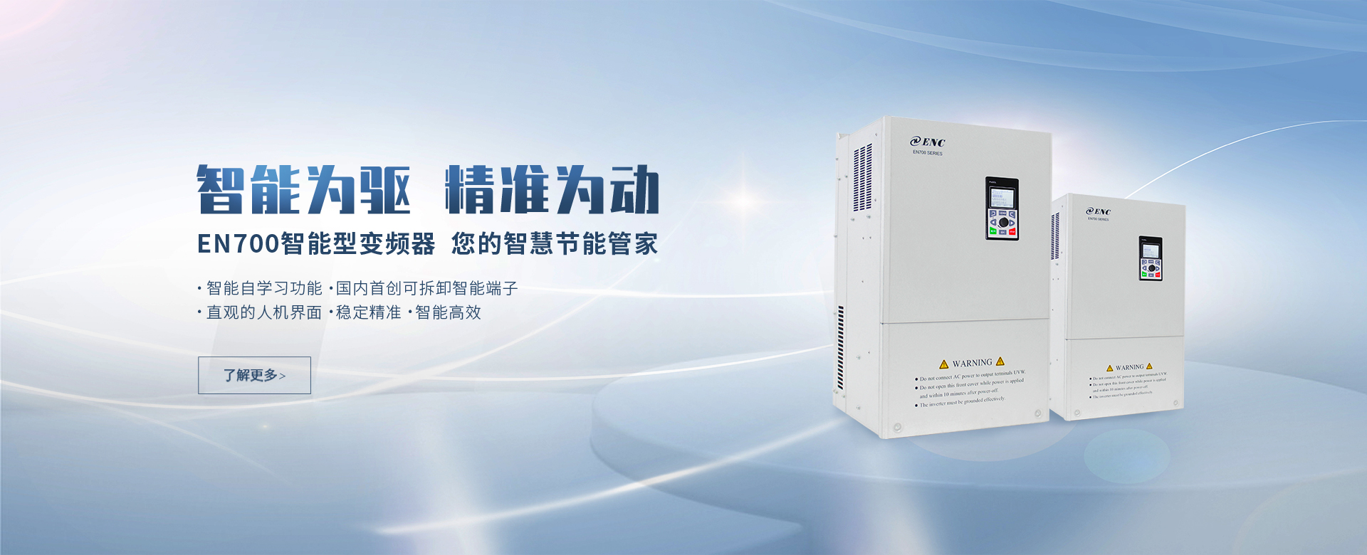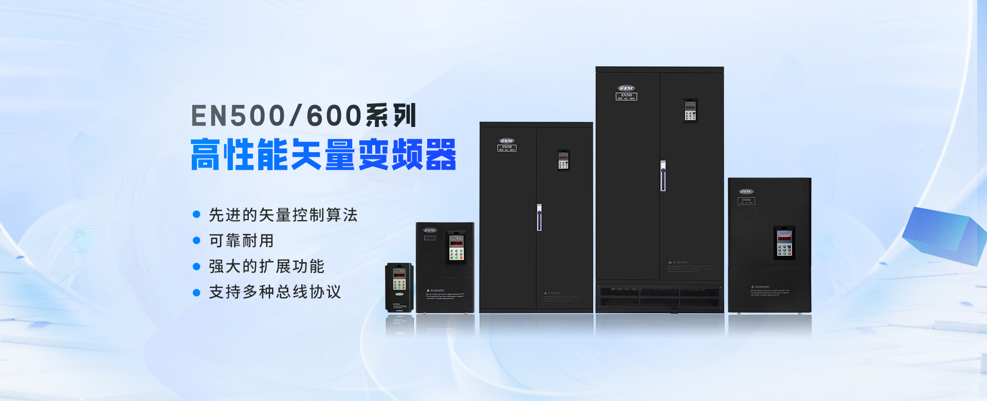 EN500/EN600系列高性能磁通矢量變頻器采用先進的控制方式實現(xiàn)了高轉矩、高精度、寬調速驅動,可實現(xiàn)有PG矢量控制,無PG矢量控制,具有速度矢量和轉矩矢量兩種工作方式,能快速限住沖擊電流,廣泛用于高端制造業(yè)。該系列產品控制精度高、速度響應快、低頻特性優(yōu)越,智能檢測與保護完善,豐富的外圍總線擴展、端子擴展、繼電器擴展、模擬量擴展等。